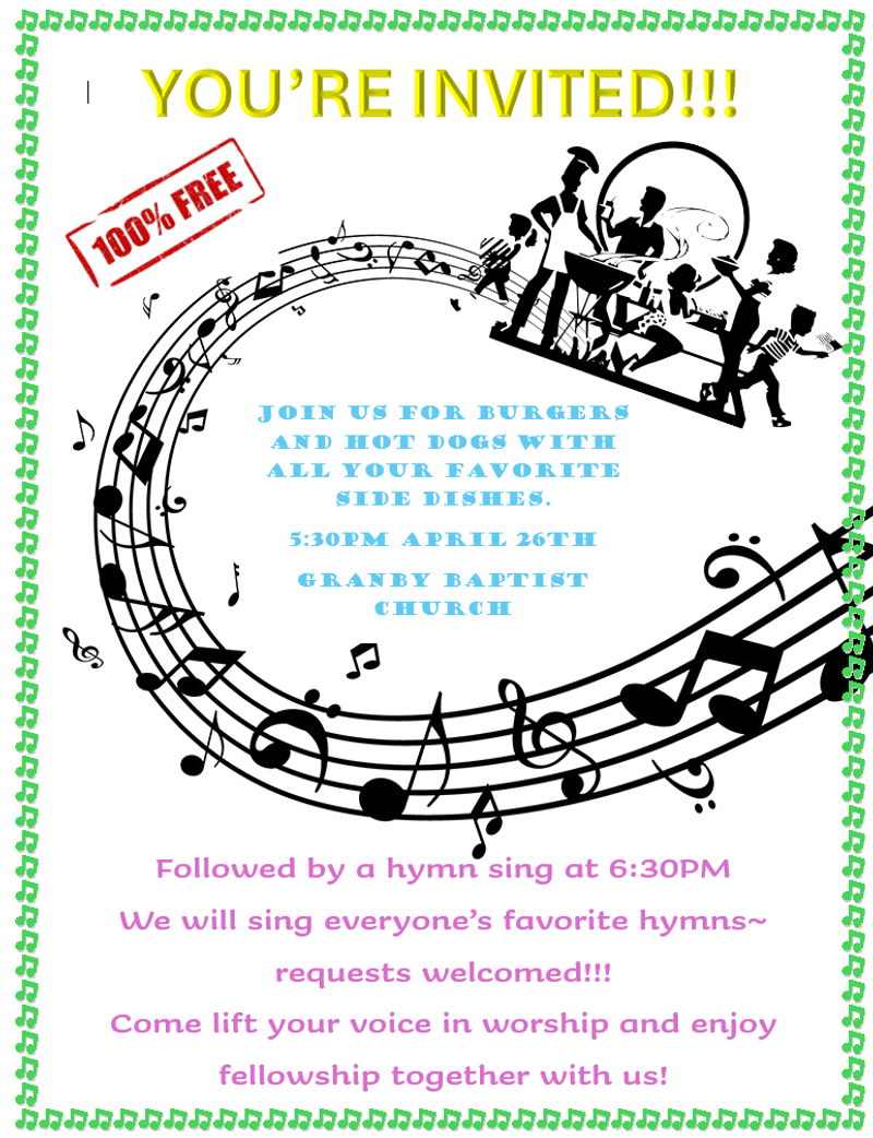 Welcome ~ It is our privilege to welcome you to Granby Baptist Church. As a local church, our main purpose is to glorify God. We serve the Lord Jesus Christ by bringing the gospel message of salvation by grace through faith to this community and beyond. We are a caring church that believes in the truth, love, grace, and mercy of the Lord Jesus Christ. Every visitor is an honored guest. We encourage everyone to come as you are, and look forward to worshiping with you.
